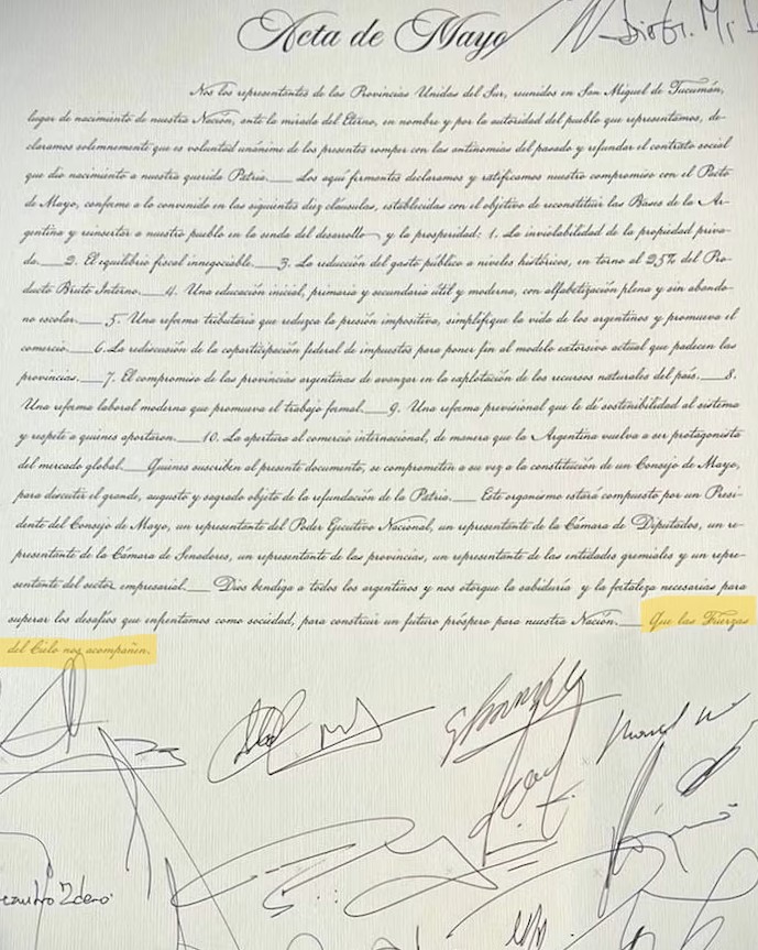 Y en el límite de un absurdo inexplicable, terminaron rogando el acompañamiento de las Fuerzas del Cielo, como se resalta en la imagen que acompaño.